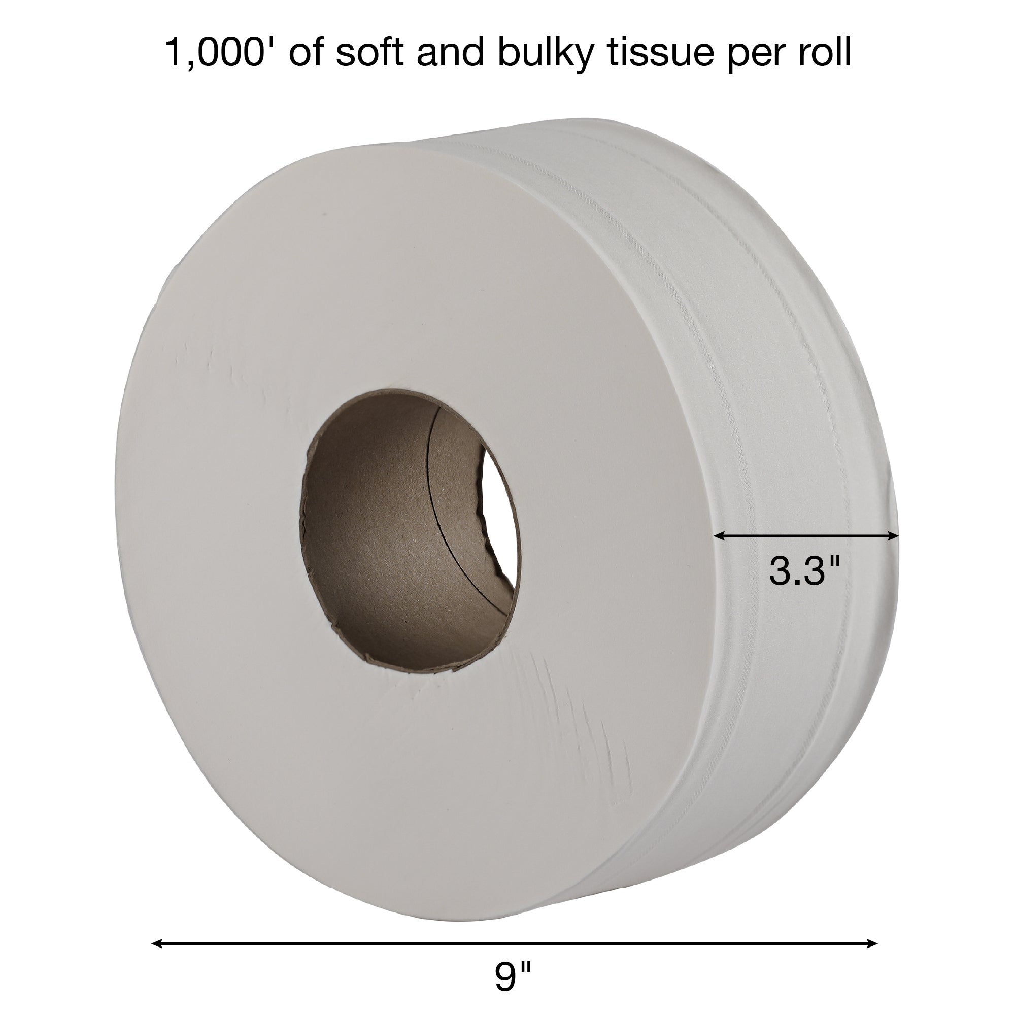 - Requires less stocking and labor with larger rolls